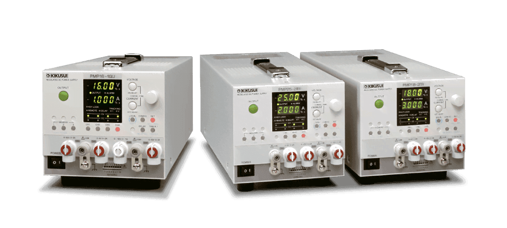 The small-size PMP Series is a DC power supply that supports simple functions and provides constant multi-output voltage (CV) and current (CC). The past multi-output power supply can provide only two types of concurrently variable output. The PMP Series, however, implements “Multi-channel Tracking” that allows all types of output to be varied concurrently. It also supports a “Delay Function” that can change output on/off timing, and a “Memory Function” that can store output settings. Moreover, the PMP Series is equipped with an external contact that enables control over turning on and off output, and over calling the memory. All the types of output this product provides have positive polarity(Only three-output model), which allows the product to be used as a power supply for developing digital equipment and other devices not requiring a negative power supply circuit. Furthermore, this product, which supports two common systems, is well adapted to an application for one power supply unit to offer digital and analog signals that have different common potentials.